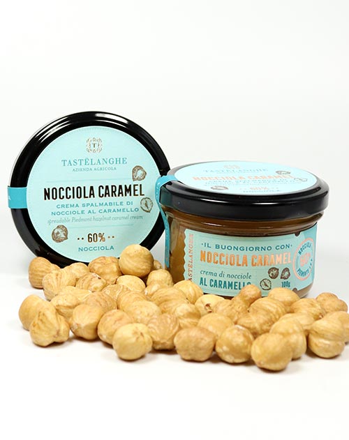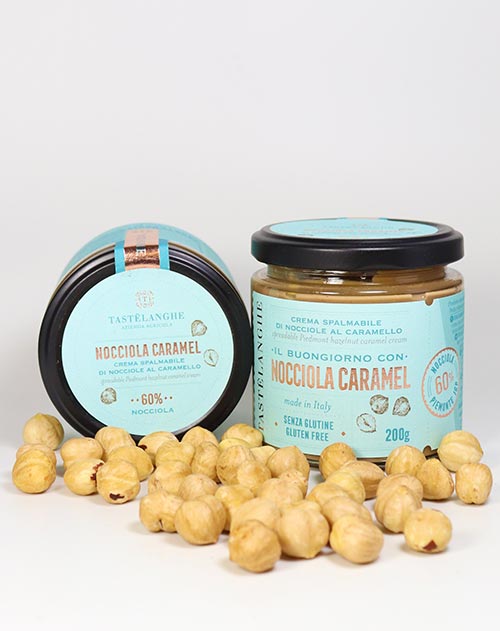 Nuss-Karamell-Creme aus 60% besten piemonteser Haselnüssen (Nocciola Piemonte I.G.P.)