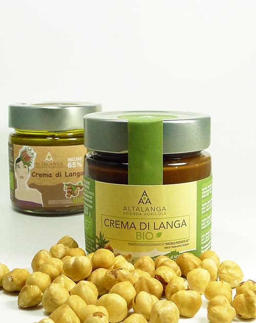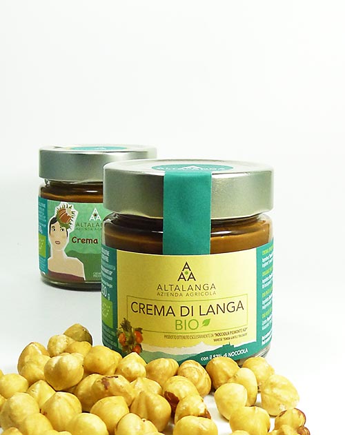 BIO-Haselnusscreme aus 65% besten piemonteser BIO-Haselnüssen von Altalanga aus dem Piemont Nocciole Piemonte IGP, glutenfrei, mit Agave gesüßt