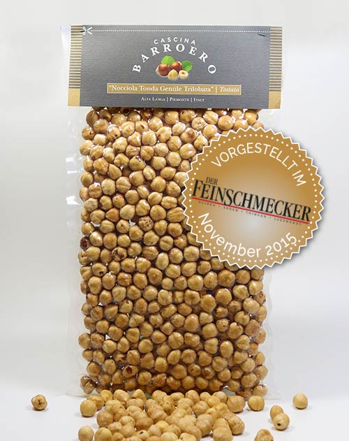 Piemonteser Haselnüsse I.G.P. von der Azienda Stefano Barroero, geröstet und leicht gesalzen. Herrlich zu Wein oder einfach zum Knabbern! Vorgestellt in DER FEINSCHMECKER 11/15
