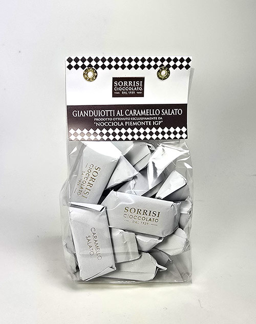 Gianduja-Pralinen mit gesalzenem Karamell – Gianduiotti al Caramello Salate con Nocciole Piemonte IGP 200g