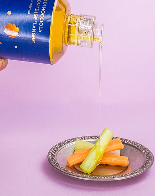 Reines, kaltgepresstes Haselnussöl aus 100% gerösteten piemonteser Haselnüssen.